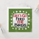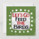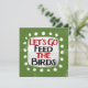 "Feed The Birds" is a cute text design in grey with black and red text, along with a white accent shape and white textured whimsical dots surrounding it.