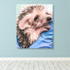 feeding a tiny and orphaned baby hedgehog canvas print