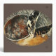 Featuring an enchanting illustration of one cat happily munching while another curiously gazes at the camera, this design captures the playful spirit of our feline friends, making it a perfect conversation starter.