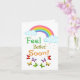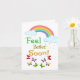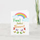 Brighten someone's day with this beautiful Get Well Soon folded greeting card! Featuring a cheerful front design with colourful butterflies, rainbow, and the word "Feel better soon," it brings warmth and positivity. The inside bottom includes a heartfelt message.