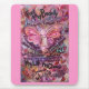 Soft pinks with yellow and blue accents frame the pink cancer angel. Hearts float throughout the painting reinforcing the message of "love" and "beauty". The inspirational cancer prayer of "Feel My Beauty" swirls around the angel and hearts.