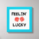 " FEELIN' LUCKY " RED DICE WITH BLACK TEXT LETTERING