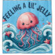 Add a splash of whimsy to your bathroom with our “Feeling a Lil’ Jelly” shower curtain. This adorable design features a cute pink jellyfish with a smiling face, floating above stylized blue waves. Surrounded by playful bubbles and red starfish, this scene captures the fun and charm of underwater life. The playful text “Feeling a Lil’ Jelly” adds a humourous touch, making it perfect for children and ocean lovers. Transform bath time into a delightful and memorable experience with this charming jellyfish design.
