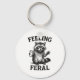 Feeling Feral Raccoon Drink Coffee Funny Trash Pan Keychain
