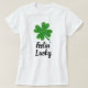 This t-shirt features a cute four leaf clover filled with Celtic inspired designs with the words "Feelin' Lucky" below it. Perfect to wear on Saint Patrick's Day.