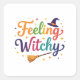 A cute colourful quote Feelin Witchy with hat and broom. Perfect for Halloween.