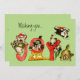 Six playful cartoon kittens wearing hoiday Christmas hats are playing on giant red letters that spell joy. Text on front reads: "Wishing you..." While on inside are more cute funny cats and a red paw print with text that reads: "... Holiday feelines of Joy - The Catnip Family" Edit any of the text to create your own personalized Christmas, Hannukah, or Kwanza Card.