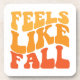 This bold and vibrant fall-themed artwork features the phrase "Feels Like Fall" prominently displayed in a retro-inspired, chunky font. The text is arranged in a dynamic, playful layout that draws the eye and adds a sense of movement to the design. The warm gradient colour palette transitions from golden yellow to deep orange, perfectly capturing the rich hues of autumn leaves. The simplicity of the design, paired with its nostalgic typography and striking colours, makes it a perfect choice for seasonal decor, apparel, or promotional materials celebrating the arrival of fall. This artwork is ideal for evoking the cozy and nostalgic feelings associated with the autumn season.