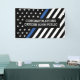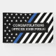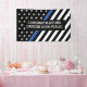 Notre conception originale, qui est le symbole universel de l'application de la loi, la Ligne Bleue Mince, permet à chacun de montrer son soutien à l'application de la loi de manière très publique. Notre bannière de félicitations est une façon parfaite de célébrer une graduation, promotion, retraite ou réalisation de carrière de toute sorte. C'est une excellente façon d'honorer et de reconnaître les grands hommes et les grandes femmes qui protègent et servent nos communautés. Assurez-vous d'en avoir un à portée de main pendant la Semaine nationale de la police et le 15 mai de chaque année pour la Journée commémorative des agents de la paix.