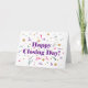 Notre carte Happy Closing Day, la meilleure façon pour les agents immobiliers de célébrer le succès de leurs clients à vendre ou acheter une nouvelle maison. Ce design de célébration heureux et lumineux est complété par un message sincère de Happy Closing Day. L'intérieur de la carte a une zone de texte pour votre nom et les coordonnées (laissez vide pour omettre) Il y a beaucoup d'espace pour vous de le personnaliser avec votre propre message de félicitations. Donc, que vous soyez un courtier qui cherche à établir des relations plus solides avec vos clients ou que vous vouliez simplement montrer votre appréciation pour leur entreprise, cette carte est le choix parfait.
