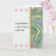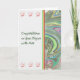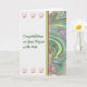 Carte de félicitations pour un diplôme en arts. Cette jolie carte a un encart marbré côté, l'arrière - plan est blanc (la couleur du degré pour les Arts) et il y a une rangée de casquettes de graduation au-dessus et au-dessous de l'écriture sur le devant. Merci à hungryjpeg pour certains des éléments du design.