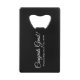 Félicitations grad noir et blanc coutume script classique texte école et année de classe Carte de crédit Bouteille Ouvert fête de graduation Faveurs. Design sobre et élégant. Texte blanc entièrement personnalisable sur couleur arrière - plan noir. Toutes les couleurs sont modifiables. Consultez le reste de la collection pour obtenir des cadeaux de remise de diplômes, des faveurs, des fournitures de fête et des articles de décoration supplémentaires.