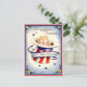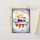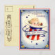 C'est une image vintage d'un bébé dans un chapeau rouge, blanc et bleu bordé de fleurs et d'étoiles. La carte dit Félicitations aux parents du nouveau patriote.
