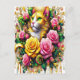 1. Step into a world of enchantment with this exquisite piece of art featuring a vibrant and whimsical portrayal of a colourful cat nestled among a bed of roses. The stylized cat exudes elegance and grace, with its serene eyes gazing out at the viewer, inviting them to get lost in the intricate details of the scene.