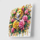 1. Step into a world of enchantment with this exquisite piece of art featuring a vibrant and whimsical portrayal of a colourful cat nestled among a bed of roses. The stylized cat exudes elegance and grace, with its serene eyes gazing out at the viewer, inviting them to get lost in the intricate details of the scene.