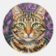 Feline and Floral | Cute Artistic Gray Tabby Cat Classic Round Sticker