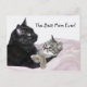 Tabby kitten snuggled up with a black cat photo postcard proclaiming "The Best Mom Ever!".  Text can be changed or removed with the CUSTOMIZE button.