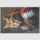 The dark background with subtle lighting highlights the cat’s features, emphasizing its readiness for battle.