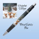 Celebrate the holiday season with these cute reindeer cartoon graphics and star lit scene of snow covered village houses with xmas lights, Christmas tree and snowy winter wonderland landscape! The words "Feliz Ano Nuevo" (Happy New Year in Spanish) sparkle bright in the starry lit night sky. This whimsical deer with antlers wildlife animal character ink pen is the perfect stationery for gifting. It's a unique doe gift for celebration with friends, family, or colleagues and the perfect stocking stuffer, office accessory, school supply or special fawn lover keepsake present. 🦌🎄🥂🎉