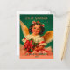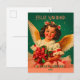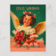This sweet little Latina angel wishes you "Feliz Navidad" on this Christmas postcard. She brings the heritage of Mexico to the day with her cheery smile and is dressed in colours of her native country: green, white, and red. The creamy orange gold of her wings and trim compliment beautifully. The setting and garb all reflect a retro look. All of the text can be edited. Be sure to change the family name to the one you wish and edit the date.