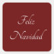 Feliz Navidad Christmas fiesta red square sticker, with elegant white script typography. Great for celebrating and wishing everyone a Merry Christmas in Spanish!