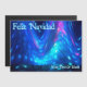 A pink and blue, fractal interpretation of the Northern Lights reflected on the surface of the sea. Qaanaaq is a settlement in northern Greenland. Spanish text reading "Buon Natale" appears in glowing blue and white. Add your own additional text.