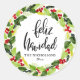 Feliz Navidad Script Red Berry Holiday Wreath Classic Round Sticker