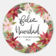 Feliz Navidad Script Red Poinsettia Wreath Classic Classic Round Sticker