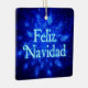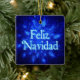A swarm of blue fractal snowflakes. Spanish text reading "Feliz Navidad" appears in glowing blue and white.