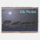 A cold, moonlit winter night; a wolfpack on the prowl. "Feliz Navidad" appears in glowing blue and white.