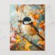 Felt Great Tit with Caterpillars in Autumn Bush Postcard
