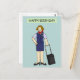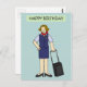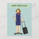 An air stewardess stands in her uniform, with a small black travel case. The words 'Happy Birthday' accompany the image.