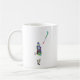 Dynamic watercolor depiction of a female field hockey player on a ceramic coffee mug. A bright and modern design celebrating women in sports, perfect for daily use or as a unique gift.