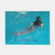 Black-haired female model swimming in a beautiful, blue sea to customize, personalize by changing to your name