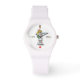 Here's a fun watch for the woman who is a nurse, or as a gift for someone you know who is a nurse. Customize this with her name underneath her (or delete text to have blank.) The 12th mark has a medicine bottle with pills, the 3 mark as a syringe shot, the 6 shot the medical red cross and the 9 spot is a digital thermometer which reads 98.6F (get it 9 at the 9?) Work with me. :D You can buy this on other watch colours and styles (if the design fits the face!!). I chose white due to nurses and white hospital attire. Designed by Sheila Cicchi, Brownielocks.com. All Rights Reserved. NOTE: National Nurses Day in the US is May 6. International Nurses Day is May 12. And, Student Nurse Day is May 8. {{{{ I Know the graphics show hands in her eyes. But the hands move! It's just too bad I can't alter the hands for presentation.)