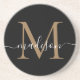 Feminine Black Gold Monogram Script Elegant Modern Coaster