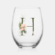 Feminine Floral Monogram The Letter H Stemless Wine Glass
