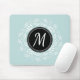 Chic mousepad with mint blue floral wreath and personalized monogram.