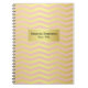 Beautifully feminine, this custom spiral notebook features a pink and gold chevron stripes pattern with matching gold inset frame. Enter your name, title or other text in place of the sample text shown to personalize.