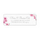 Une étiquette d'adresse de retour aquarelle moderne et élégante, avec une petite branche de fleurs de cerisiers et une combinaison de polices de caractères et de polices classiques. Un choix agréable pour un mariage, un anniversaire, un anniversaire, une famille, la fête des mères, un anniversaire ou toute autre occasion, pour une famille, un couple ou un individu.