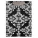 Feminine White on Black Damask Clipboard