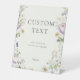 The FLORENTINA wildflower custom sign design features a feminine design with a cream and pastel colour palette (perfect for spring or summer bridal showers) showered in a wreath of watercolor prairie wildflowers, paired with a series of classic serif fonts in a shade of dark grey. These garden shower custom pedestal sign is perfect for a springtime or summer wildflower themed bridal shower.