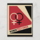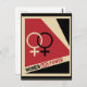 The red and black dynamic design with interlocked female symbols represents women from all backgrounds as a powerful force.