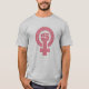 The feminine symbol with a power fist in the centre in shades of pink, on t-shirts, sweats, buttons, stickers, gift items.