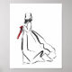 L'élégante ligne d'encre d'une femme coréenne dans le hanbok traditionnel tenant un ruban rouge. Décor culturel minimaliste mais expressif pour intérieurs modernes.