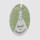 Le Mariage De Bridesmaid Vert Maintient Merci Favor Cadeaux. Motif Vintage vert Victorien esthétique Damas modèle. Doucement illustré avec une robe blanche mariage et des notes musicales fantaisistes, un coeur et un lieu pour le titre de la fête de mariage comme Maid of Honor, Flower Girl, Bridesmaid, Usher, Mother of the Bride. Et un endroit pour une photo sur le dos et une note personnelle de Merci de la mariée et de la chambre.