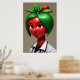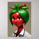 Portrait d'une mignonne pomme rouge avec des cheveux verts portant des vêtements blancs. C'est un art généré par l'IA.