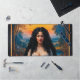 Une femme aux cheveux noirs longs et bouclés est assise sur des pattes croisées, dégageant un sentiment d'élégance et de calme, tout en étant entourée d'un paysage luxuriant. L'arrière - plan dispose d'un coucher de soleil animé avec des arbres et des montagnes. Lisez L'Histoire À L'Adresse Suivante : https://xzendor7.com/elegant-woman-meditative-harmony-in-natures-beauty/