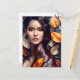 Femme dans les feuilles d'automne, Carte postale, Carte postale, Carrefour postal, Croisement, femme, portrait carte postale, automne, carte postale, feuilles, Génération de l'IA, générosité, saisons, adorable carte postale