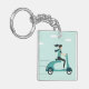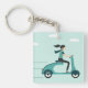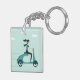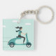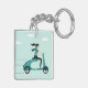 Une femme qui roule à toute vitesse sur un scooter. Cette conception semble vraiment efficace sur ces Porte - clés